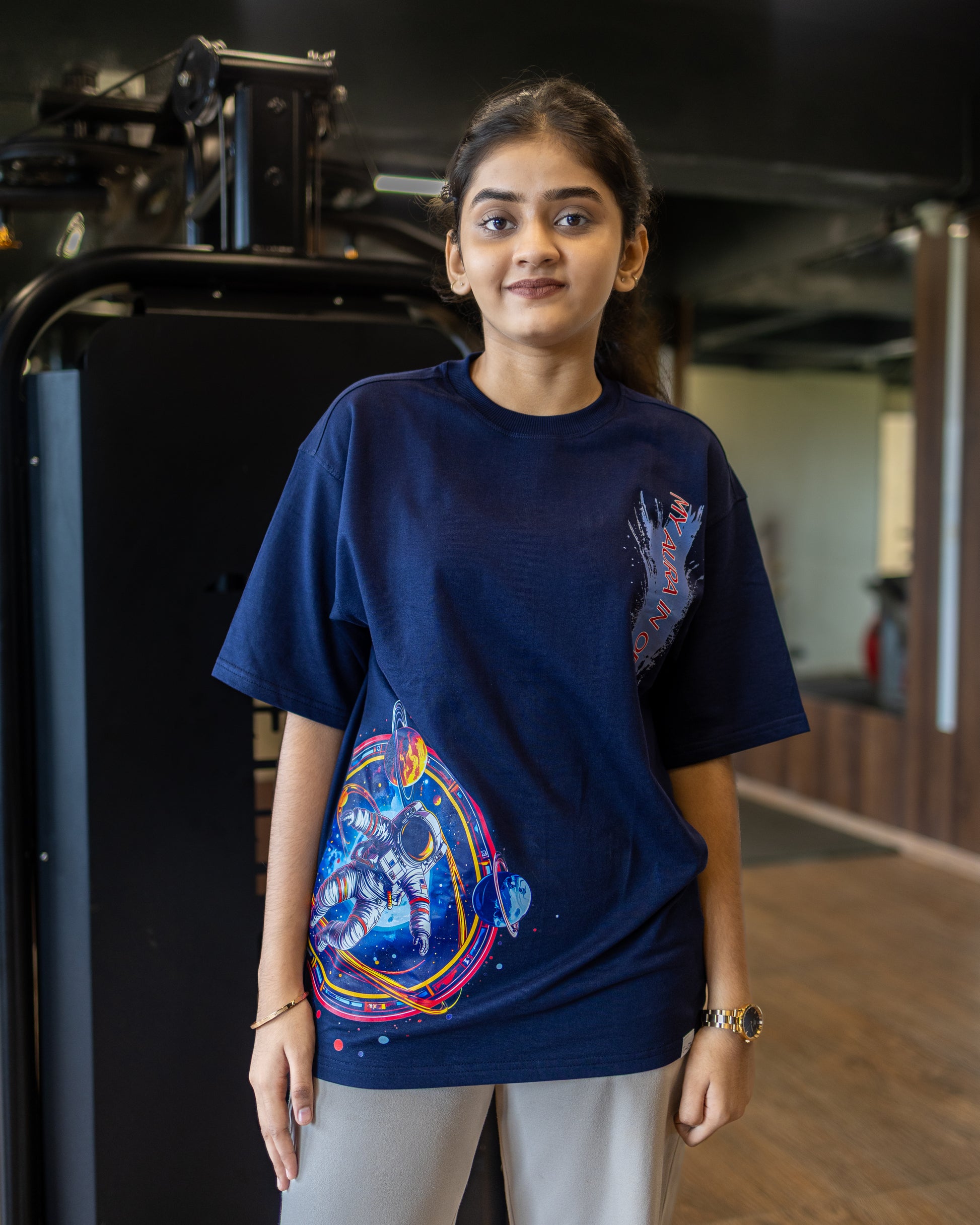 Inspired by the bold spirit of space exploration, this tee blends NASA-core details with celestial dreamscape aesthetics. Metallic-style prints, cosmic insignia, and starlit gradients make it feel straight from orbit - perfect for those who live with curiosity on another level.